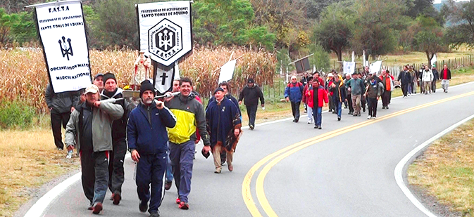 El padre Fundador dice en su mensaje a los milicianos que van a marchar: “En Fasta, desde los comienzos mismos de la Milicia Juvenil aprendimos a marchar. En aquellos, ya tiempos milicianos de antaño, la marcha nos incorporaba a un espacio natural que terminaba en cumbres y que nosotros transformábamos en paisajes donde aprendíamos a amar a la Patria encontrándola con Dios. Así, aquellos escuderos y templarios aprendían a amar a Dios, a la Iglesia y a la Patria. Después fueron creciendo con sacrificios y entregas, marchando ahora por los caminos que la vida misma les imponía transformando los paisajes naturales en paisajes existenciales. Surgieron así las familias y las obras que dieron pie a lo que hoy es la Ciudad Miliciana. Todo esto y lo que allí mismo está implicado es lo que ustedes van a vivir en estos días de marcha, pero tratando que los caminos que recorran se vayan transformando en una misteriosa peregrinación que los acerque al Reino de los Cielos”.