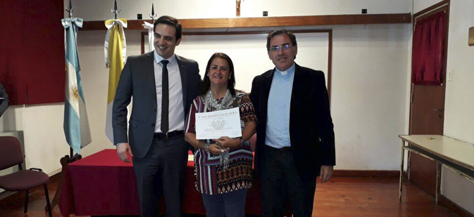 Mediante Internet me enteré de la beca papa Francisco que otorga la Universidad Fasta, así que me inscribí y la sorpresa fue que salí favorecida con la beca de Honor, para realizar La diplomatura en Psicología Cristiana, el cual fue muy valioso para mi formación personal y espiritual en el ámbito de la educación religiosa que es en lo que yo me desempeño asesorando profesores de primaria y secundaria.